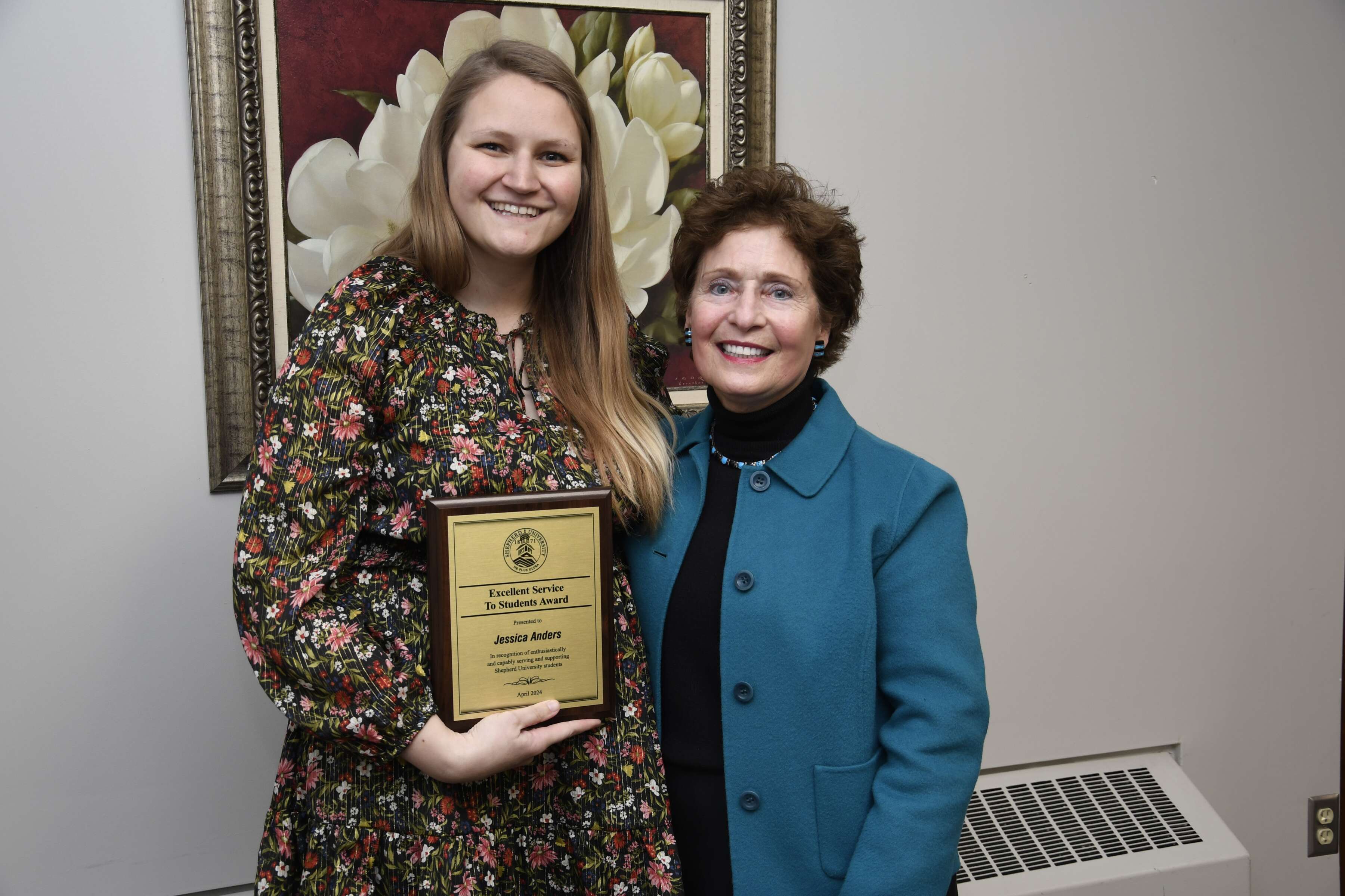 The Excellent Service to Students Award distinguishes a staff member who has been especially supportive of Shepherd students. They have shown that they value students by enthusiastically and capably serving them. The 2024 Excellent Service to Students Award was presented to Jessica Anders.