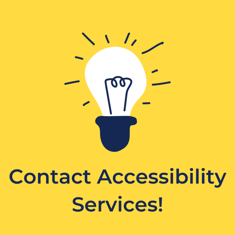 - Reduced Distraction Environment for Testing: This accommodation provides students a quiet environment to take their tests, which can be done in the Accessibility Services Proctoring Office.