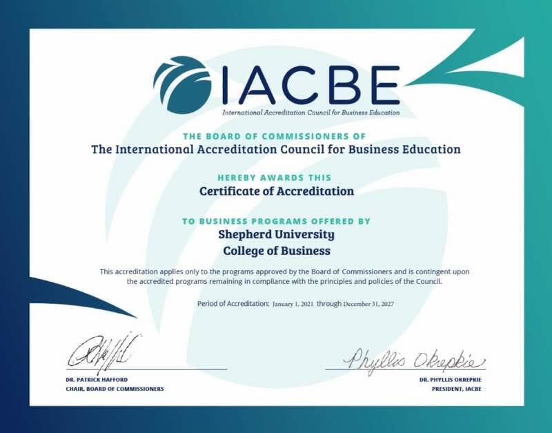 The College of Business, Recreation, and Education at Shepherd University has received specialized accreditation for its business program(s) through the International Accreditation Council for Business Education (IACBE) located at 11960 Quivira Road in Overland Park, Kansas, USA. For a list of accredited programs please view our IACBE member status page.