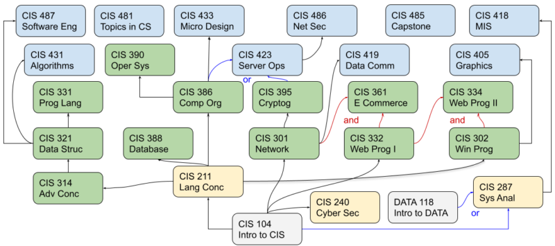 Above: the CIS prerequisites graph. Go to the online catalog for the complete and authoritative list of all courses and prerequisites.