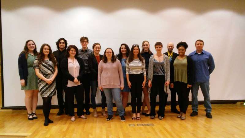 Congratulations to the 21 English and English Education majors who presented their capstone projects on Sunday, April 9th. They make us very proud! From left to right: Meaghan Papeika, Daisy Thomas, David Bennett, Kristi Veach, Chace Jones, Maggie Cohee Nevin, Kyla Thomas, Emily Womeldorff, Rachel Bearry-Sandstrom, Julia Athey, Katie Quinnelly, Mike Sandy, Tiana Davis, and Christopher Bonar. Not pictured: Hannah Badley, Rebecca Barb, Michael Barbour, Allex Benedict, Leah Jenkins, Allie Showman, and Carissa Snider.