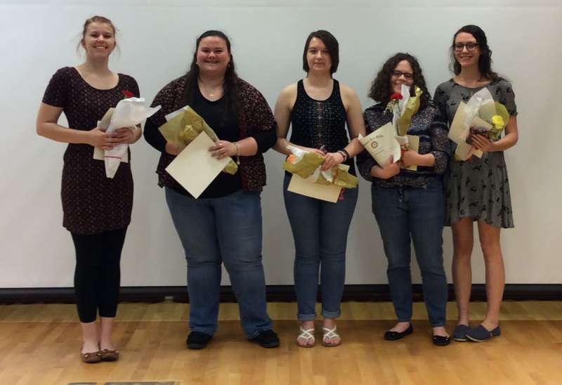 Congratulations to the newly initiated members of Shepherd University’s Sigma Tau Delta chapter: Olivia Barrett, Gabby Hersey, Sarah Markle, Claudia McCarron, and Casey Otto, and Charlie Reckner (not pictured). They were inducted into the honor society during a brief ceremony on Sunday, April 9th.