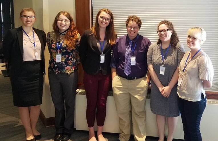 University. Those students were Julia Athey (Business Administration and English), Rebecca Barb (English Education), Michael Barbour (English), Madeline Dillow (Sociology), Brianna Maguire (English), and Claudia McCarron (English). Claudia McCarron was recognized for having written the best essay among all state-wide submissions for her essay “‘The Destined Prophetess’: Uncle Tom’s Cabin, The Scarlet Letter, and the American Jeremiad.”