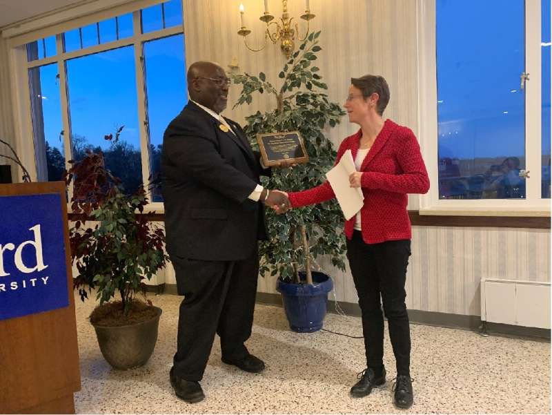 On Wednesday, March 6th, Dr. Eva-María Suárez Büdenbender, Associate Professor of Spanish, received the Storer College Faculty Award, which recognizes a member of Shepherd’s faculty who incorporates diversity and social justice into his or her classroom, research, scholarship, and interaction with students. The award and the ceremony are sponsored by the University’s Diversity and Equity Committee. In her remarks, Dr. Suárez talked about people being grouped in easily defined identity categories—how her research explores that tendency, how her teaching challenges that behavior, and how her life exemplifies that experience. Way to go Eva!