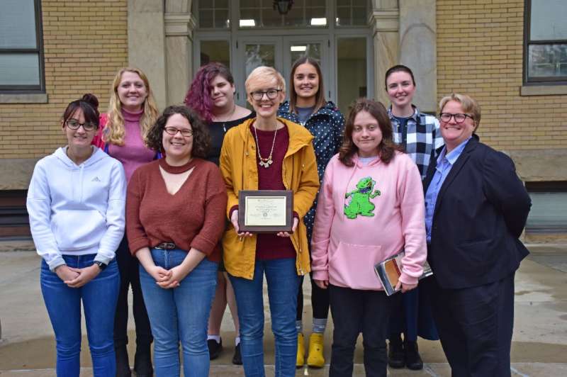 Shepherd University and the Department of English and Modern Languages are both extremely proud to announce that our very own chapter of Sigma Tau Delta (ΣΤΔ), the international English honors society, has been given an Outstanding Chapter award—only one of four chapters worldwide to be so recognized. The Outstanding Chapter Award is designed to recognize local chapters that have exhibited outstanding motivation, creativity, and service in the preceding year. In making the award, Sigma Tau Delta International Honor Society cited the Shepherd chapter for exciting literacy-related programming, significant contributions to the annual convention, and impressive accomplishments by individual members that would be helpful as models for other chapters. Our hearty congratulations to Dr. Hanrahan (the ΣΤΔ faculty sponsor) and the student members for this well-deserved recognition!
