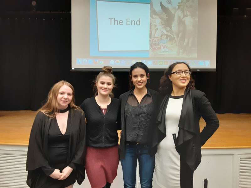 On September 21st, four Shepherd students/recent graduates—Gabrielle Hersey (2019 graduate), Claudia McCarron (2019 graduate), Linnea Meyer, and Caitlyn Sheets—led a roundtable presentation entitled “Nineteenth-Century Women Writers at Work” at the Sigma Tau Delta Regional Conference hosted by Mount St. Mary’s College. Dr. Indrani Mitra, Professor of English at Mount St. Mary’s, emailed us to let us know that she was “very impressed by the quality of their research and their articulate presentations.” She added, “Their personal and passionate engagement with the material made their presentations especially enjoyable. Thank you for sending this impressive team of young women to the conference.” And thanks to Caitlyn, Claudia, Gabby, and Linnea for making us all look so good!