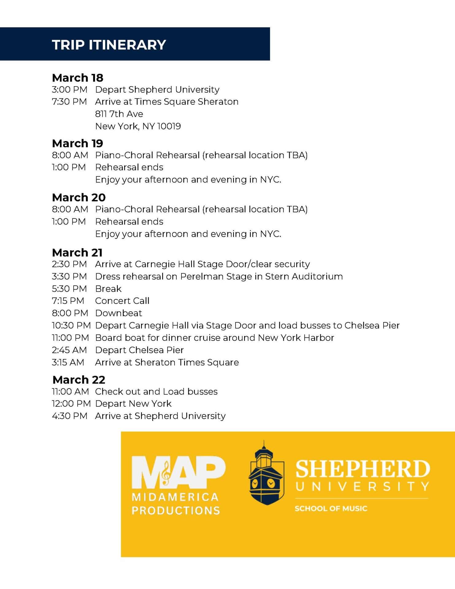 Tuition assistance is available for full-time Shepherd University students enrolled and participating in many of our music ensembles. Click here for an application.