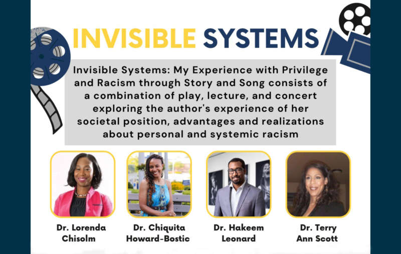 The event, which is free and open to the public, will take place Thursday, March 3, from 6-8:30 p.m. via Zoom. It will include viewing the “Invisible Systems” documentary, which uses original songs, personal stories, dialogue, and visuals to explore the author’s experience of her societal position, advantages, and realizations about personal and systemic racism. After participants view the documentary, they will take part in community dialogue sessions followed by a brief panel discussion about the impact systems of discrimination in politics, theater, and the arts have among people from various racial and ethnic backgrounds.