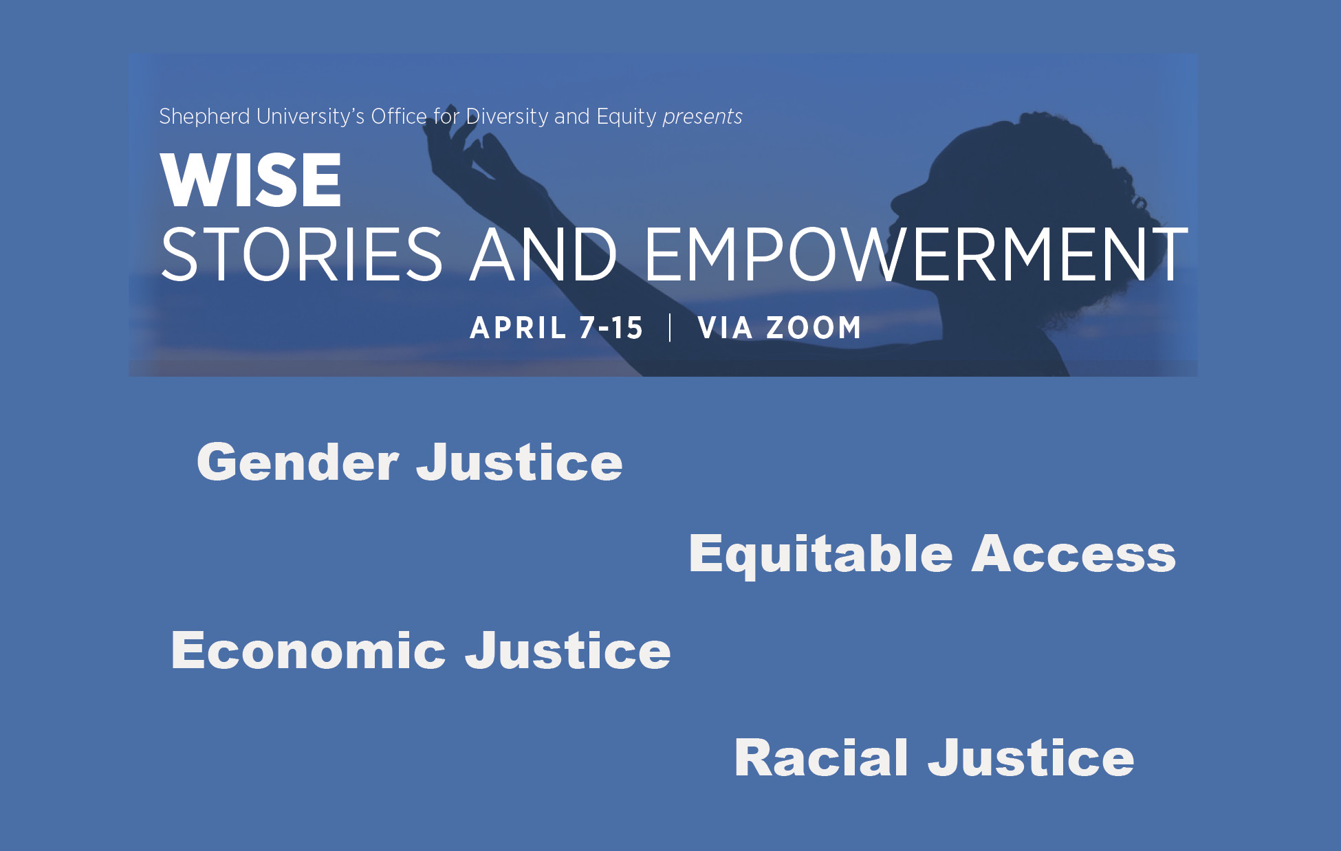 SHEPHERDSTOWN, WV — Shepherd University’s Office for Diversity and Equity and is co-sponsoring the WISE Stories and Empowerment series of free workshops and a leadership training event that are free and open to the public. The series, which is designed to empower communities to capture and share their experiences and histories, begins Wednesday, April 7, and will cover supporting gender justice, economic justice, racial justice, and equitable access to services and resources.