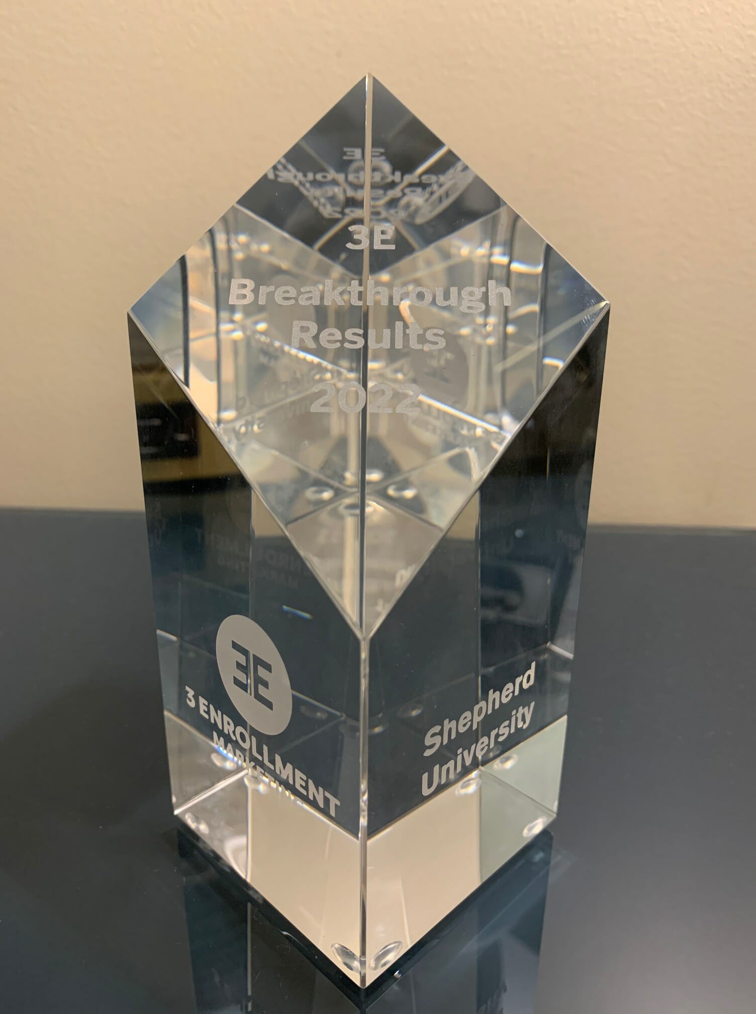 Shepherd began working with 3 Enrollment Marketing (3E), a comprehensive and modern higher education enrollment solutions company, last year in an effort to market Shepherd more effectively to a broader range of students. The company hosts an annual reception to celebrate the efforts and successes of its partner institutions and recognize the outstanding achievements of individual teams. They present awards in categories aligned with the company’s core values.