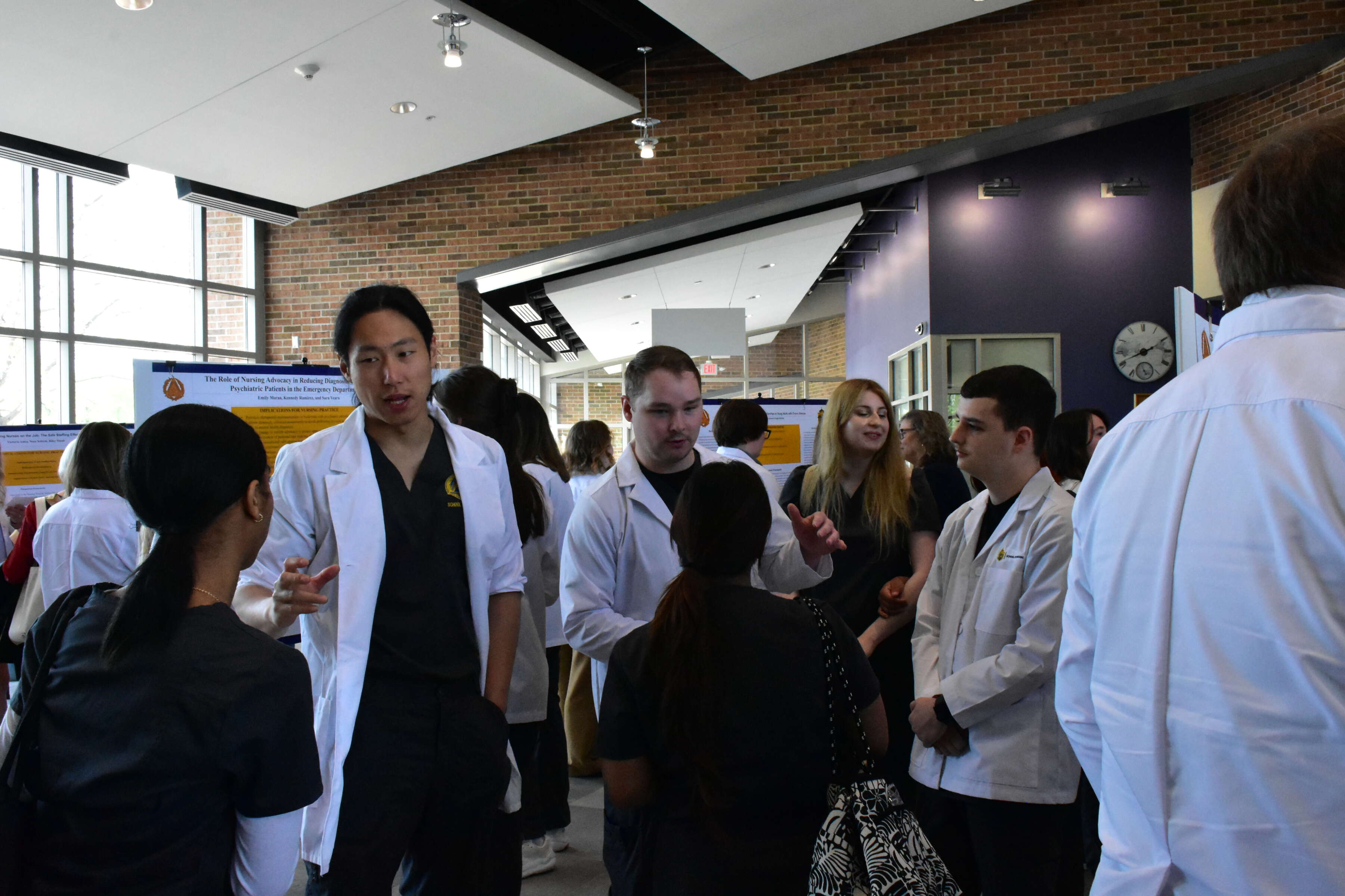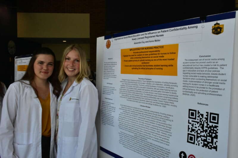 BSN seniors shared their research with posters throughout the program, examining topics such as interprofessional collaboration, nurse-patient relationships, ethical decision-making, and emerging technologies, like artificial intelligence.