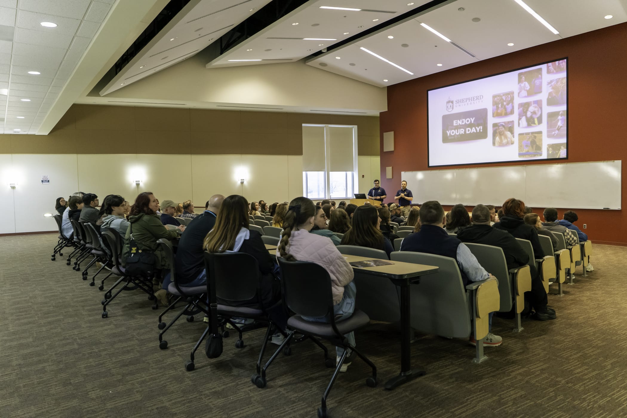 The day began with a welcome program and information session outlining the admissions process and opportunities available to Shepherd students. In a new format, visitors then created personalized schedules based on their academic interests, allowing them to attend departmental sessions, meet professors in their classrooms, and learn about Shepherd’s majors and minors.