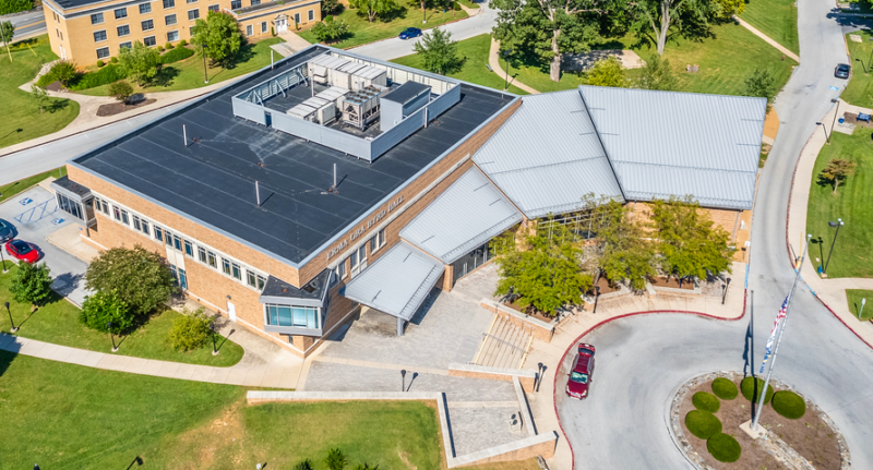 Erma Ora Byrd Hall, a 37,000-square-foot, two-story building with specialized nursing classrooms, five simulation labs, a 120-seat lecture hall, conference rooms, and a student study center.