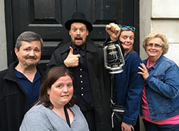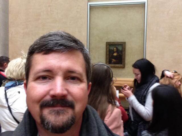 Below, we’re pictured with our guide for the London Jack the Ripper tour. (And there’s me in Paris with the obligatory Mona Lisa selfie.)