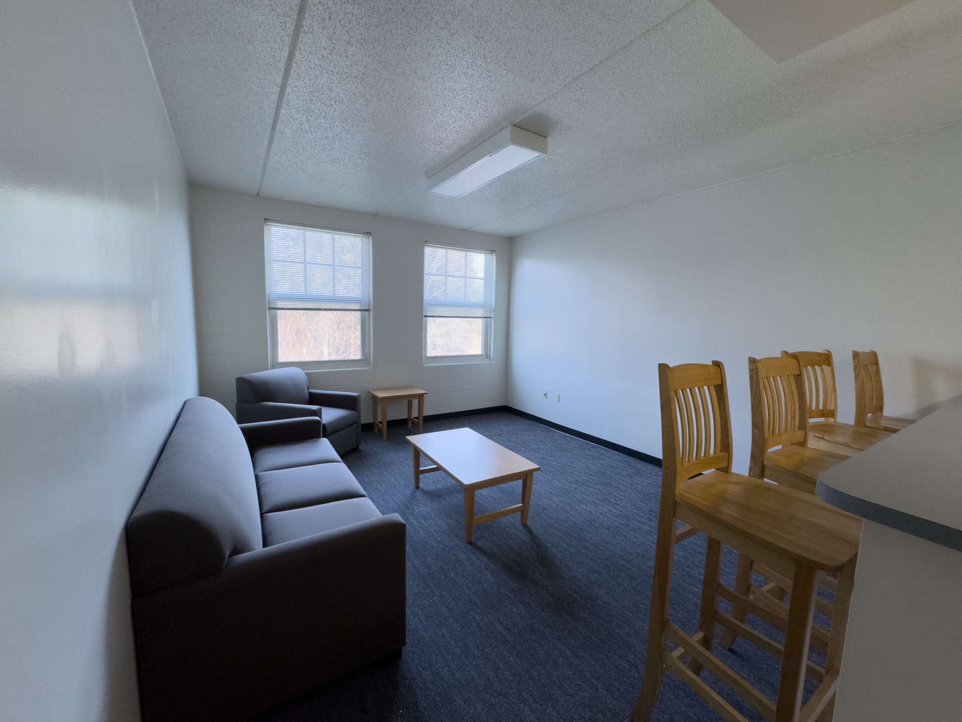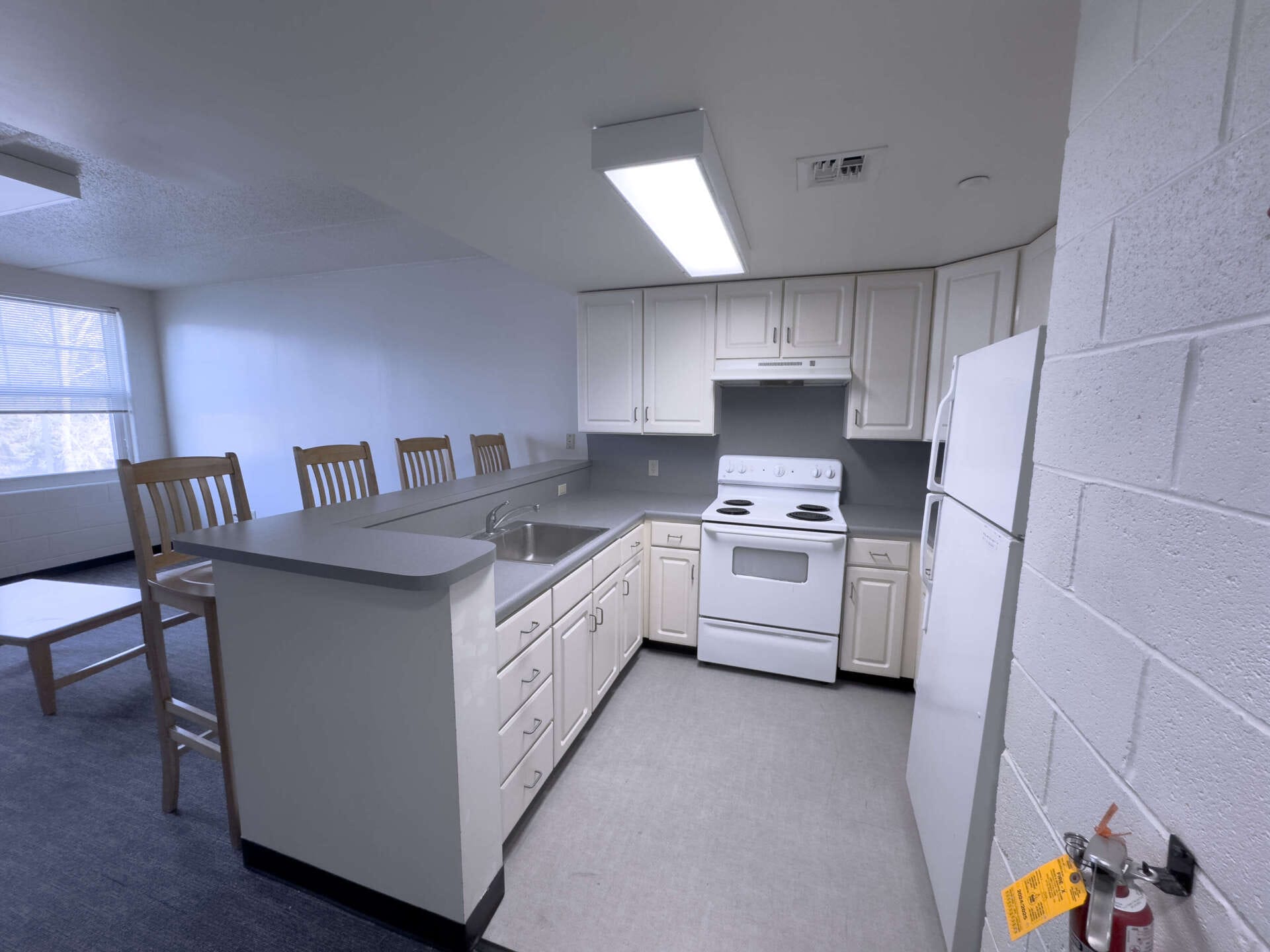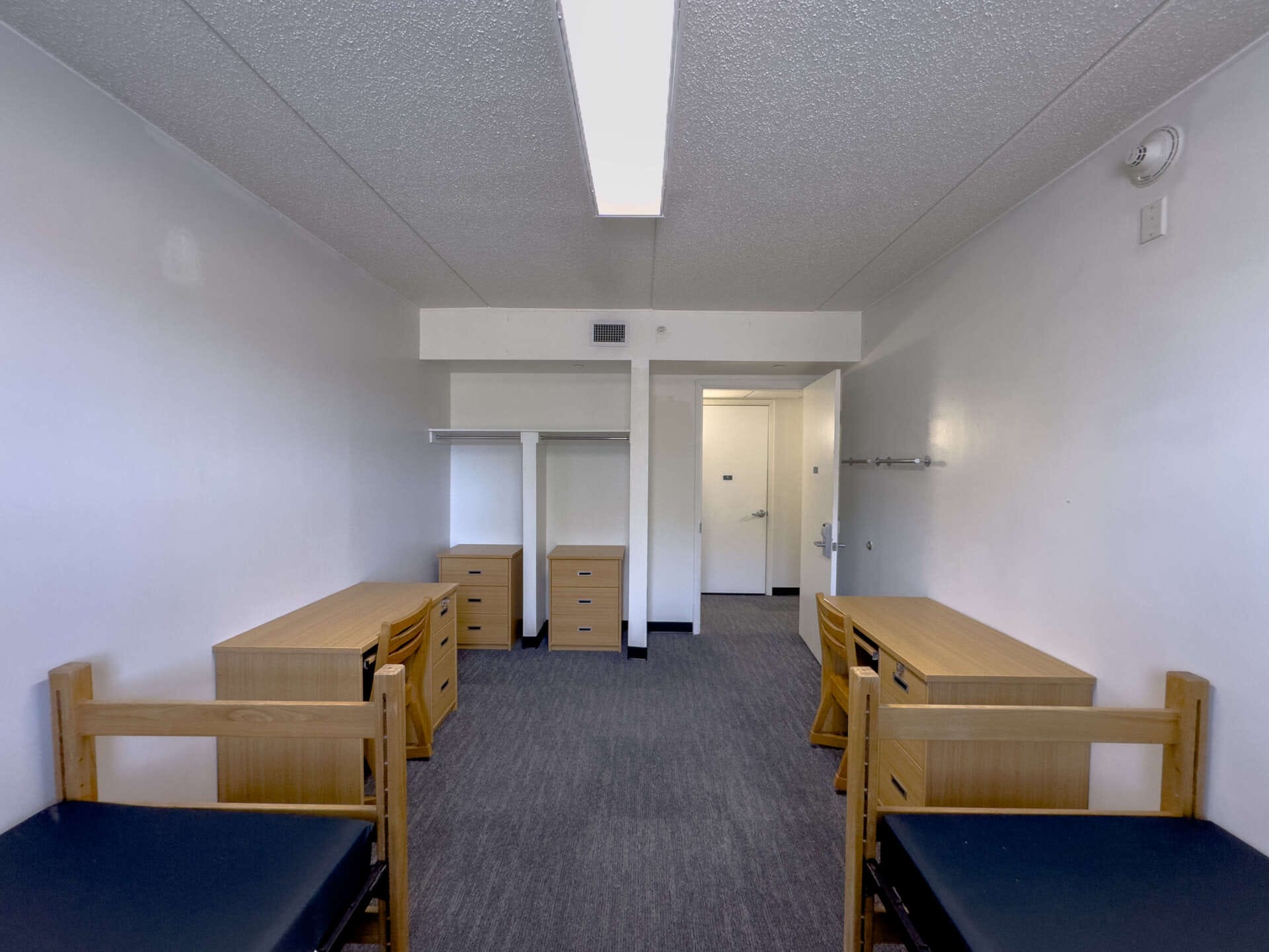 Dunlop and Printz Halls are apartment-style living options for sophomore, junior, and senior-level students. Dunlop and Printz Halls offer double and single-occupancy rooms, each with semi-private bathrooms. Each building has three floors, with approximately thirteen apartments and interior access on each floor. An apartment typically features a full kitchen, a living room, a bathroom, and two to three bedrooms. Note: Three-bedroom units have two bathrooms. Vending machines and free laundry facilities are located in the lobby of each building.