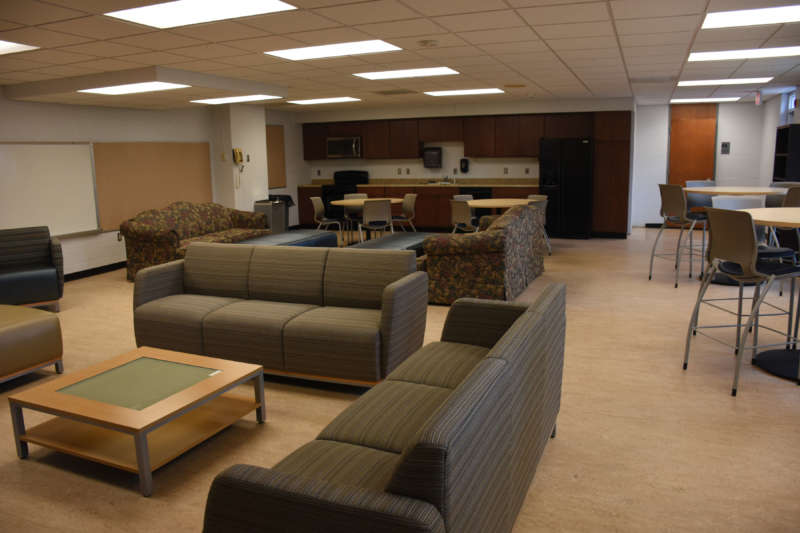 Designed with commuter students in mind and opened in 2017, the Commuter Lounge offers a full kitchen that includes a refrigerator, microwave, and sink, as well as comfortable seating and tables for studying or gathering.