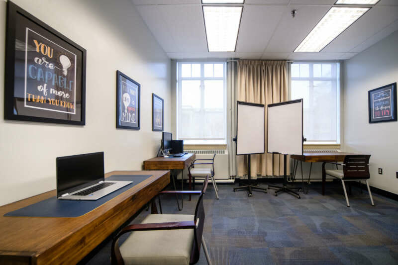 Located in the Student Center, Suite 122 is the Student Success Center Study Space. There are five success coaches who can help you with questions about campus, resources for test anxiety, time management, and more. In the study room there are four desks, a desktop computer, Chromebooks, whiteboards for group study sessions, calculators, and other resources to create a perfect study space for any type of learner. To view the Student Success Center’s weekly hours, check their Instagram @shepherd_ssc