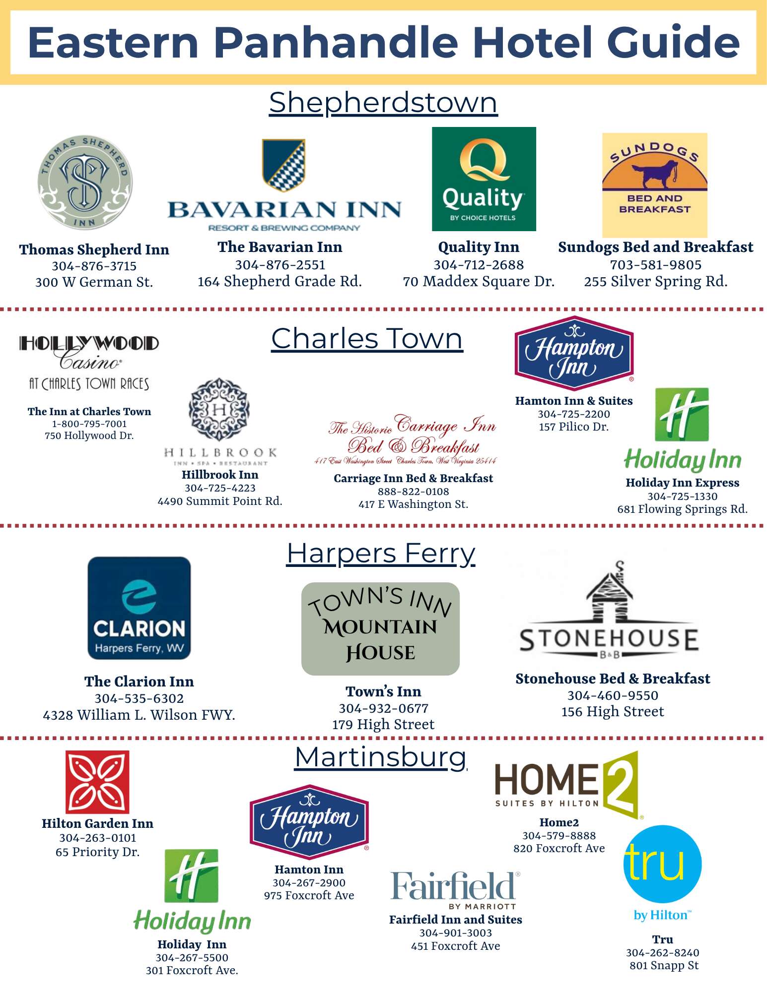 Looking for a place to stay? Check out this list of local hotels, B&Bs, and inns – including Shepherdstown, Charles Town, Harpers Ferry, and martinsburg.