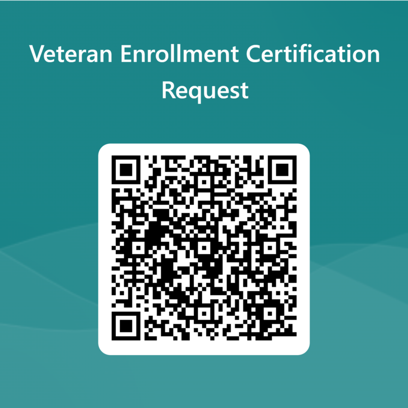 FOR ALL FORMS OF VETERAN/MILITARY BENEFITS: submit theĀ Veteran Enrollment Certification Request (now online) each semester you wish to use benefits, OR use the QR Code below.